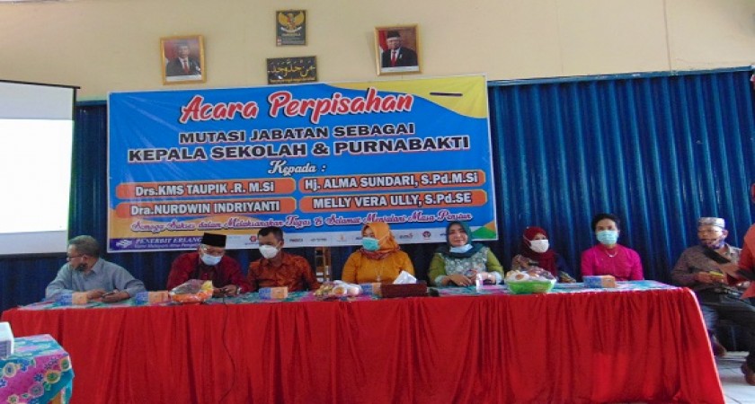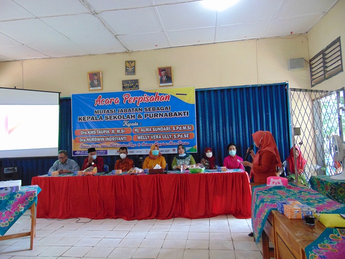 Kegiatan Perpisahan Guru Diangkat Menjadi Kepala Sekolah Serta Pergantian Kepala Sekolah Drs. Kms. Taufik Menjadi Ibu Hj. Nyayu NUrlaila, M.Pd.